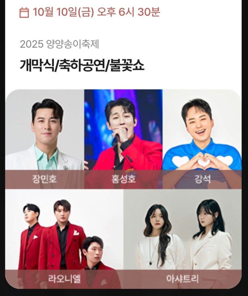 - 참가방법고고양양 앱에서 사전 예매 또는 현장 구매(10월 9일 11시 59분까지 예약가능)